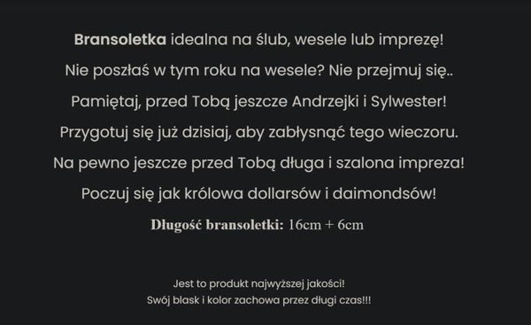Bransoletka z cyrkoniamii, blyszczaca- wesele ,slub,impreza