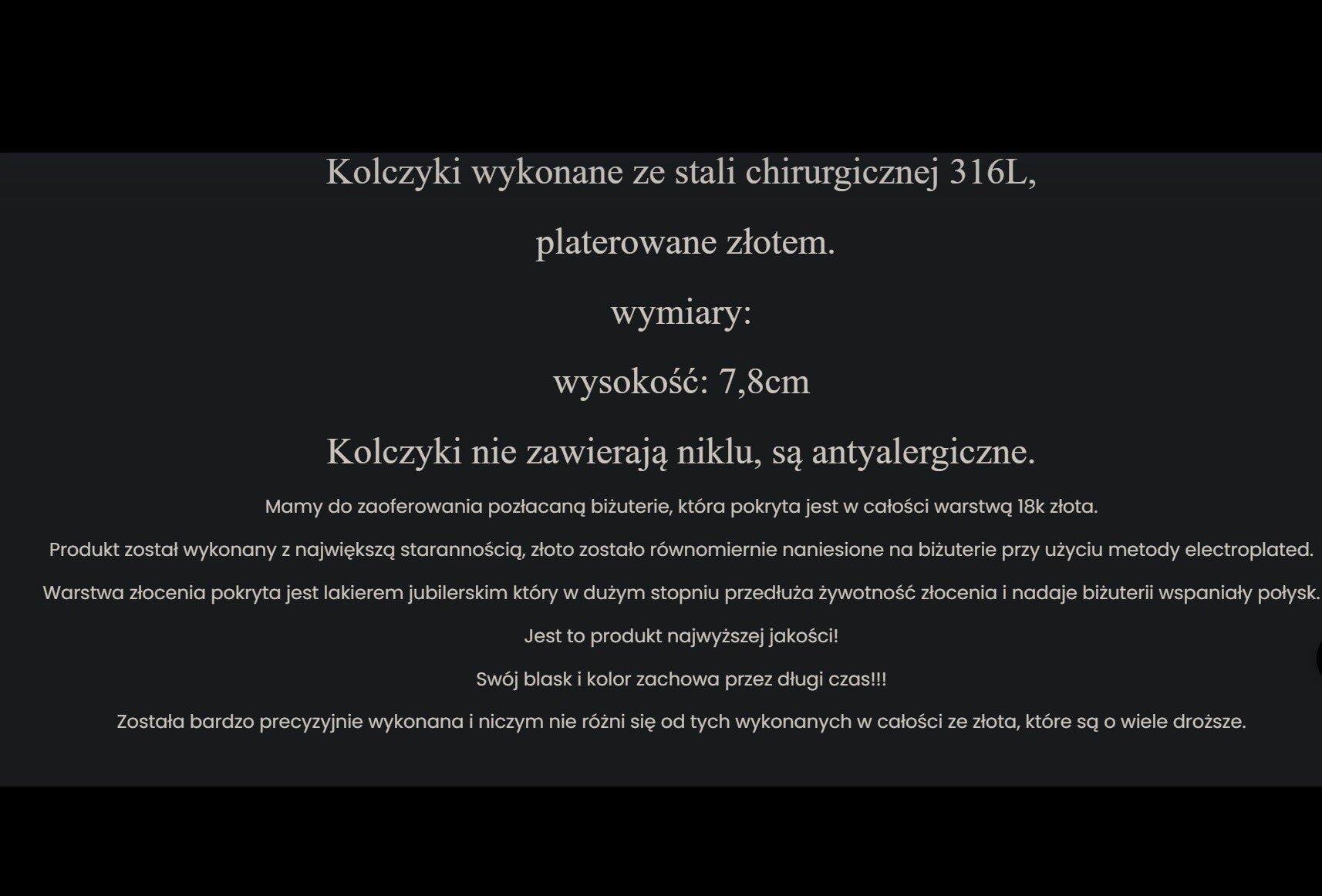 Kolczyki zlote , stal chirurgiczna ,wiszace celebrytki