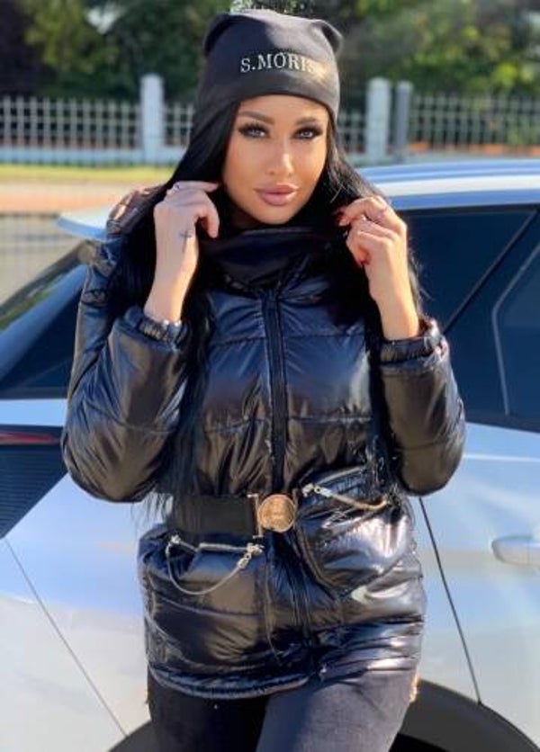Miekki i mily w dotyku Komplet wykonany z weluru. Czpka oraz komin ozdobione naszywka ze zlotym napisem