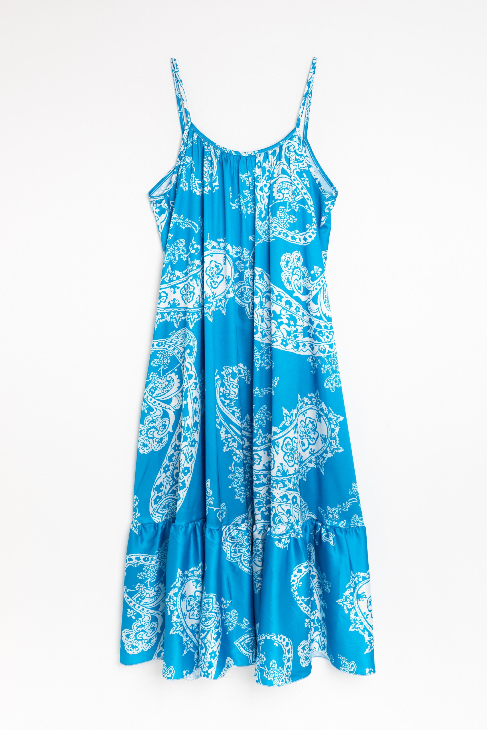 Zwiewna sukienka z falbana i dekoltem na plecach
