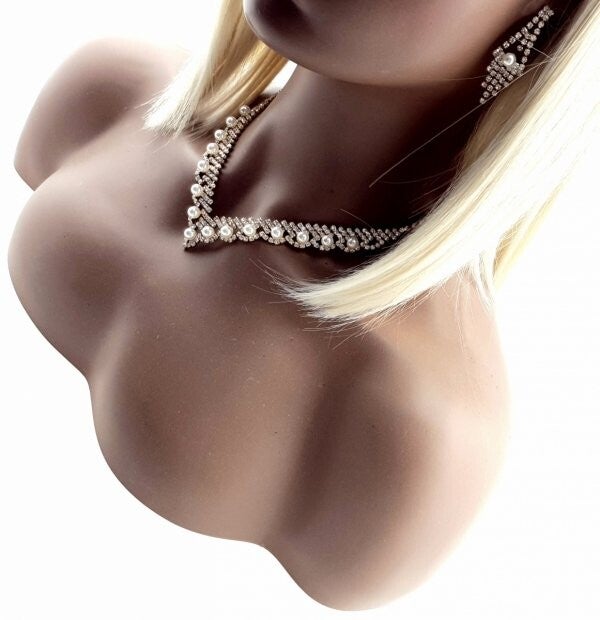 Komplet bizuterii sztucznej z cyrkoniami : naszylnik i kolczyki