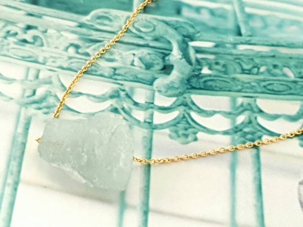 Naszyjnik z AKWAMARYNEM , celebrytka pozlacana 18k zlotem